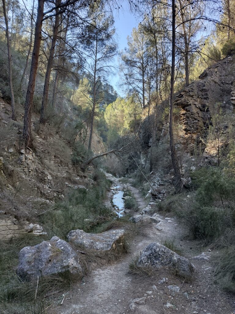 Na zo’n zes kilometer kwamen we in een kloof die ongeveer een kilometer lang was en heel smal werd. Gelukkig had het de afgelopen dagen niet geregend anders zou hij onbegaanbaar zijn.