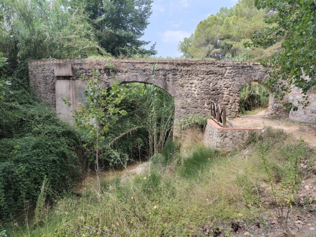 We startten in Aielo de Rugat en liepen een km op de SL-CV 43 totdat we het beginpunt bereikten van de SL-CV 84. Deze route gaat langs allerlei sinaasappelgaarden naar het dorp Montitxelvo. Een niet al te groot dorp en vervolgens daalden we af naar een rivier. Het pad langs de rivier was soms een beetje overgroeid met rietplanten. We kwamen bij een mooi aquaduct uit de 12de eeuw.